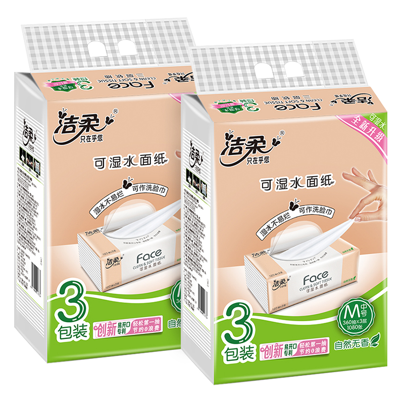 洁柔抽纸纸巾自然无香卫生纸3层120抽6包