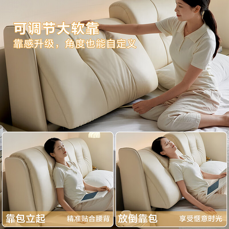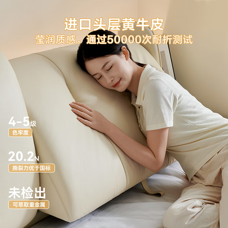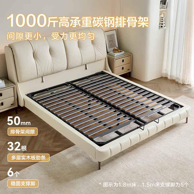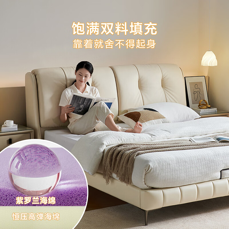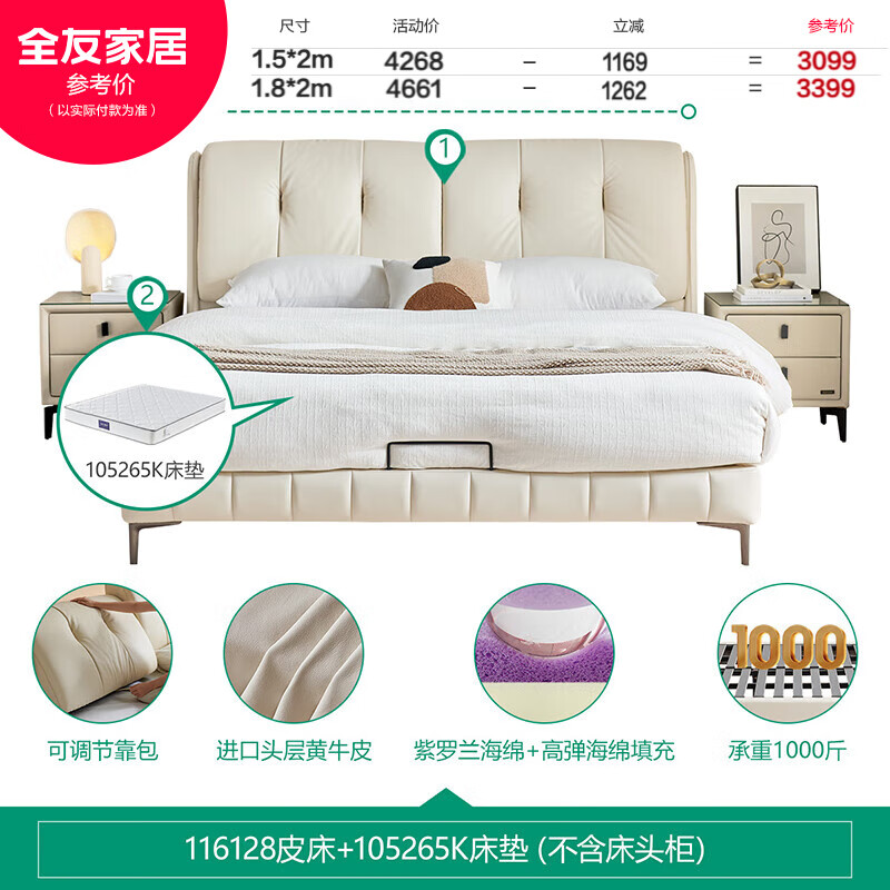 全友家居奶油风多功能真皮床家用1.8x2米头层牛皮软包双人大床116128 【牛皮】单床+床垫 1.8*2m