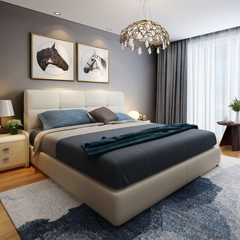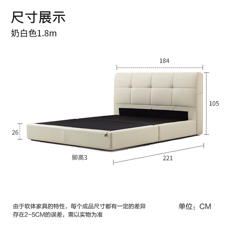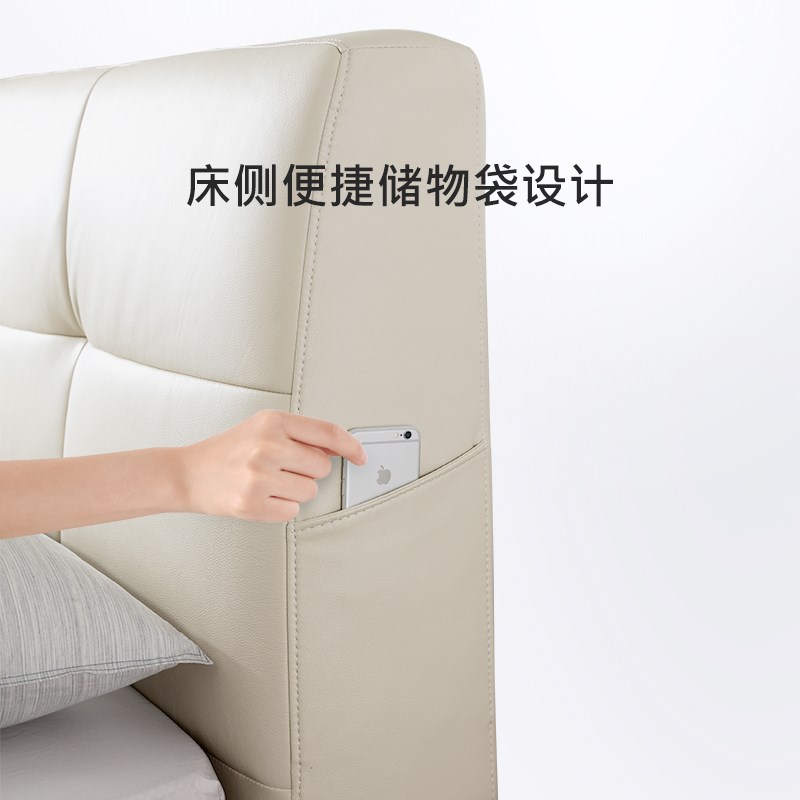 顾家家居皮床实木床现代简约头层牛皮双人软床卧室家具DK.B112梦想系列 【15天发货】奶白色 【1.8*2.0m】