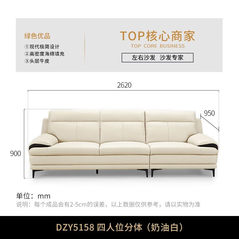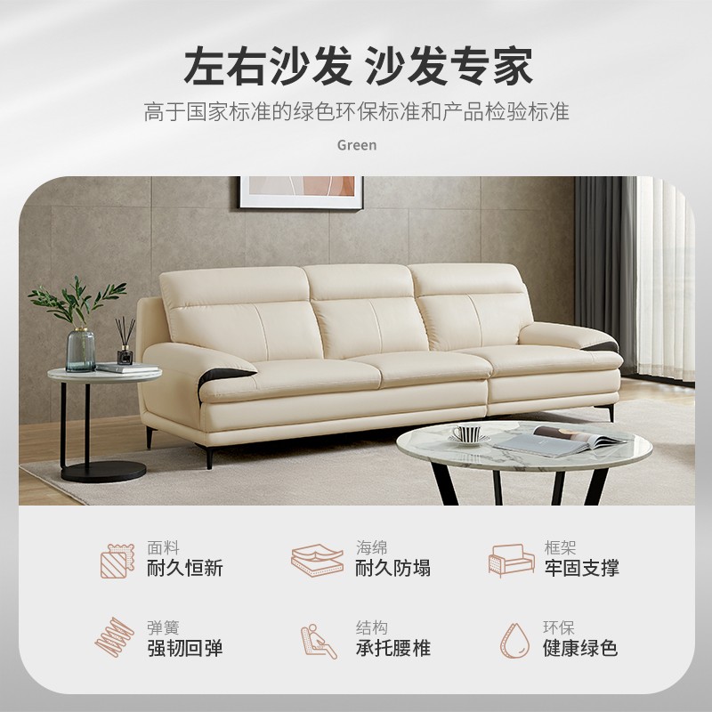 左右 沙发 真皮沙发头层牛皮客厅小户型直排皮艺沙发现代简约家具沙发DZY5158 四人位真皮沙发【Z1018奶油白】7-15天内发货