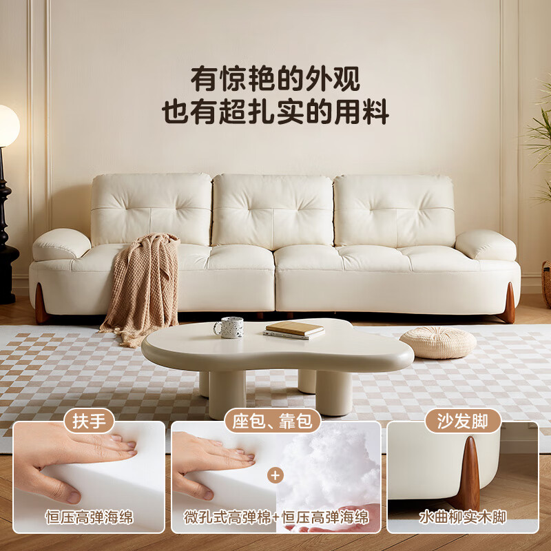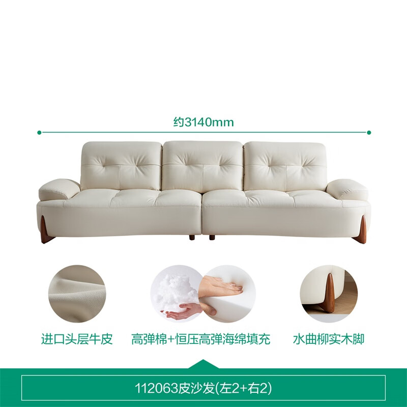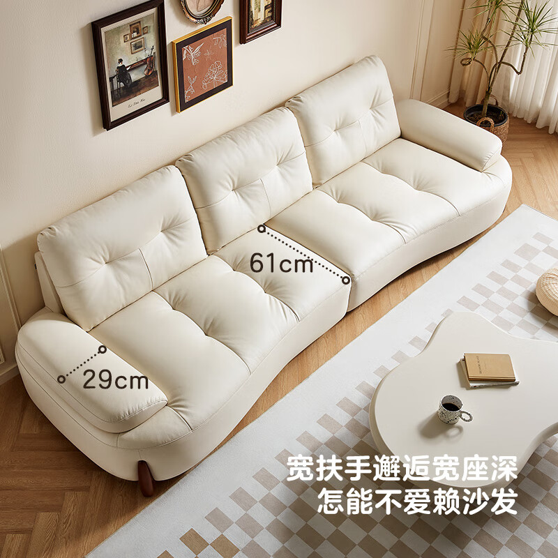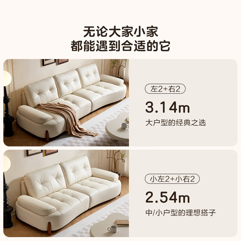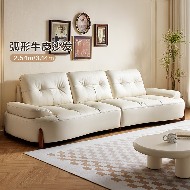 全友112063海湾奇遇真皮沙发客厅奶油风创意弧形沙发 白色|牛皮3.14米直排沙发