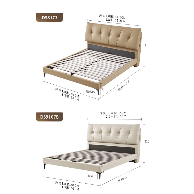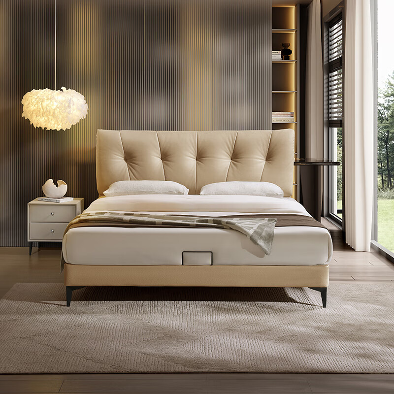顾家家居皮床 现代轻奢奶油风平移储物卧室双人大床进口头层牛皮婚床8173 【月暮白】1.8m储物床+床头柜*2