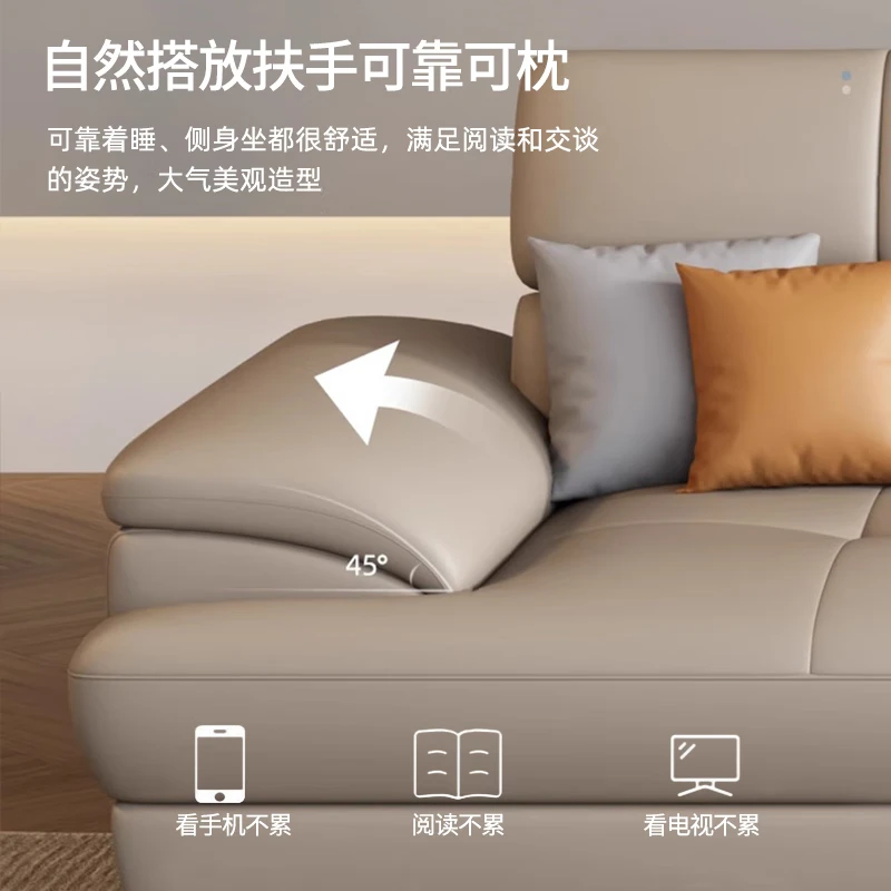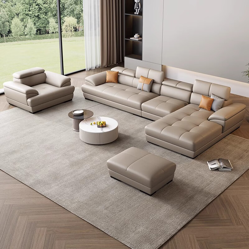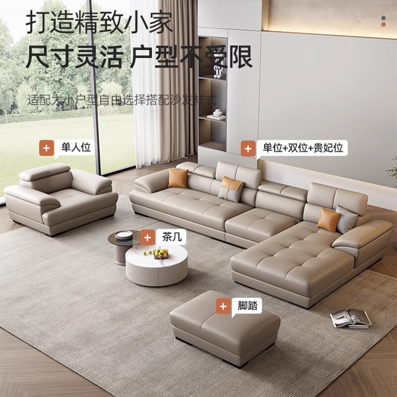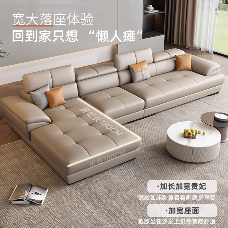 顾巢北欧真皮沙发头层牛皮现代简约客厅小户型奶油风皮沙发 双人位+单人位+贵妃位(3.57米) 海绵座包