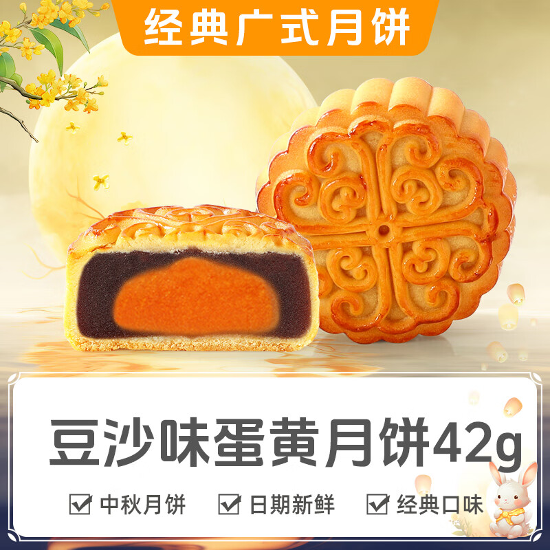 味滋源中秋节广式月饼黑芝麻豆沙水果多口味传统糕点心散装月饼R 豆沙蛋黄味42g【单枚】