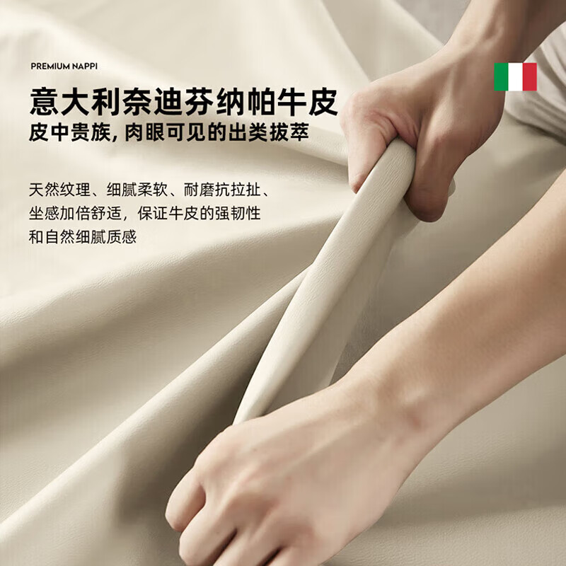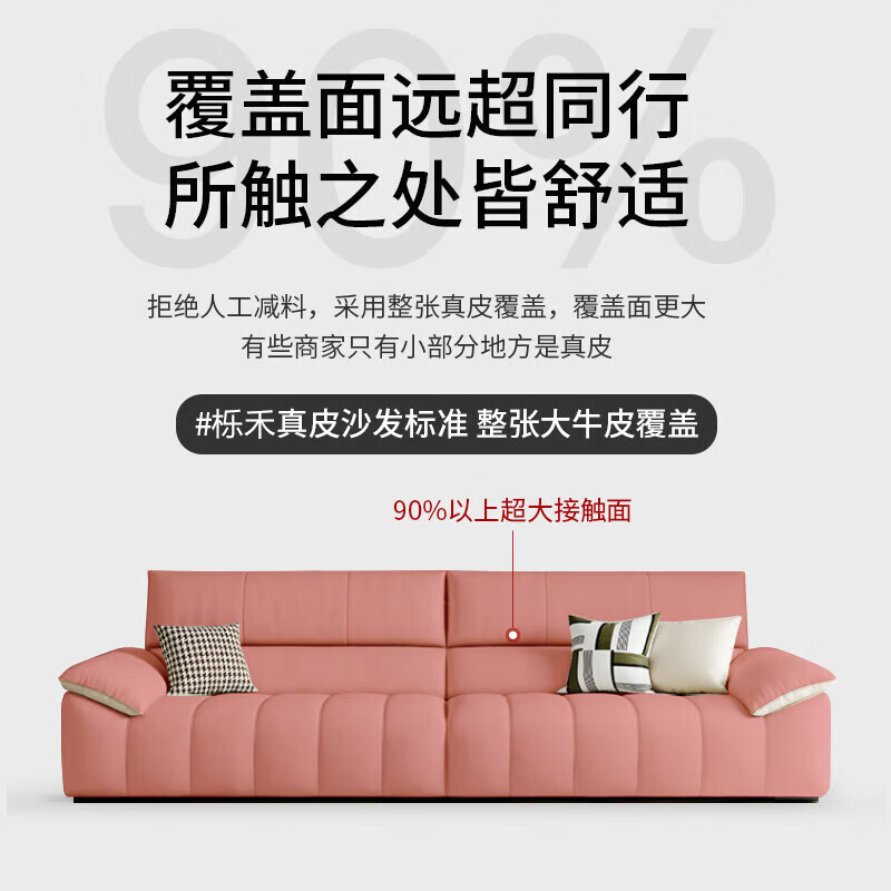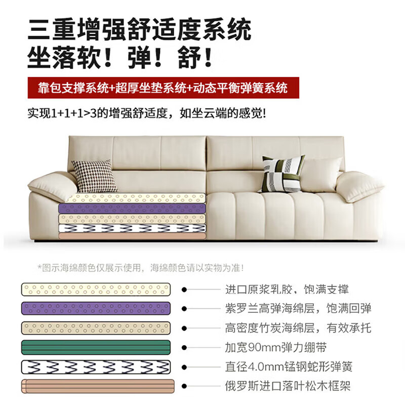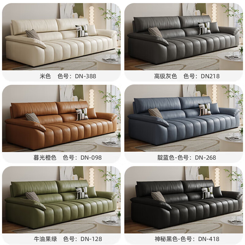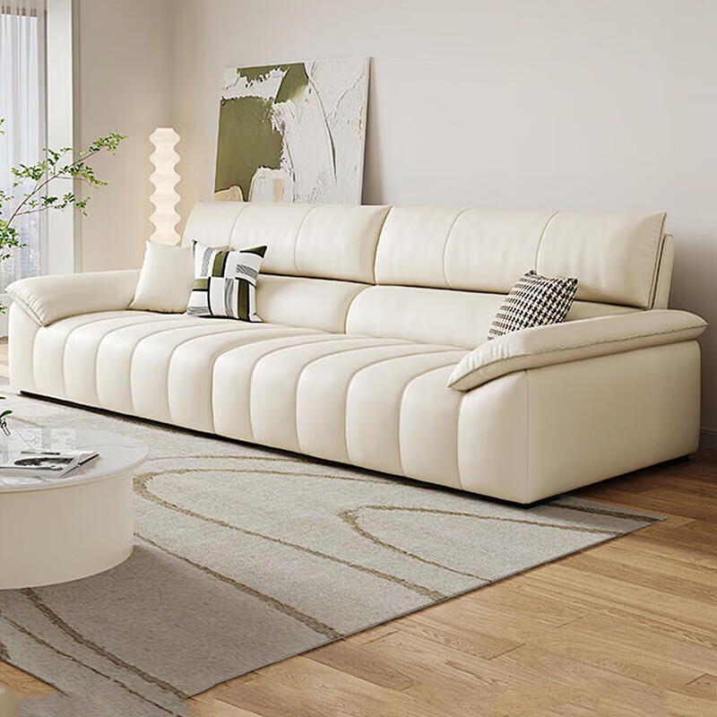 栎禾钢琴键奶油风真皮沙发客厅现代直排大小户型横厅意式简约牛皮沙发 三人位【2.3米】 奈迪芬纳帕真皮【海绵座包】