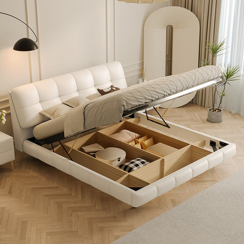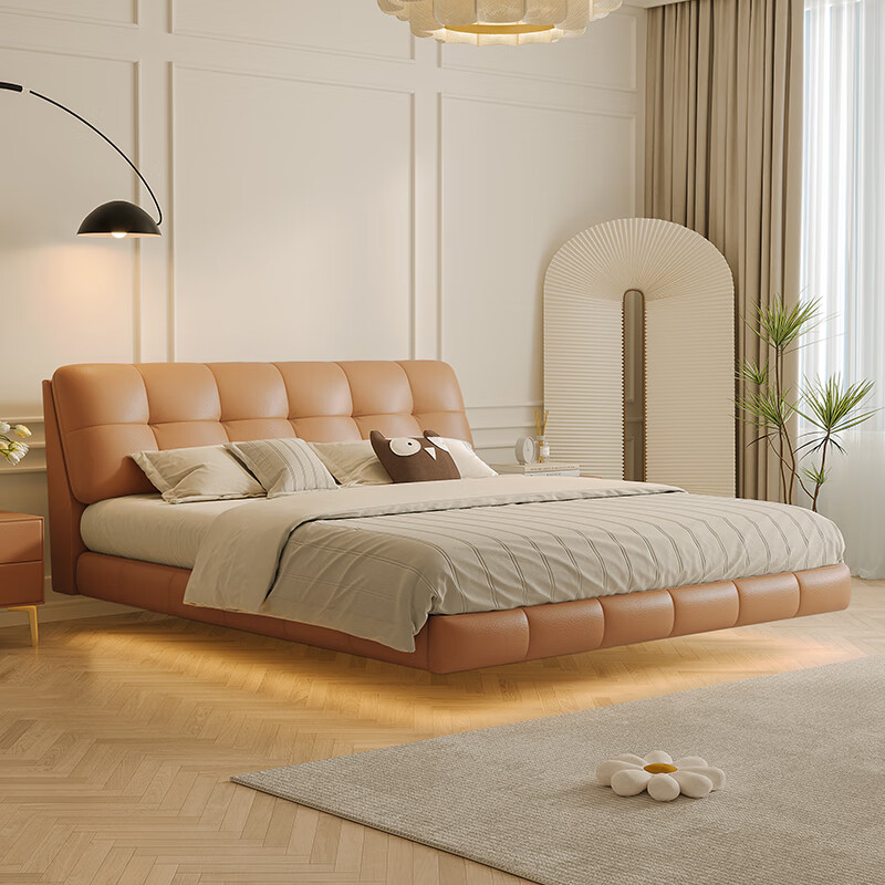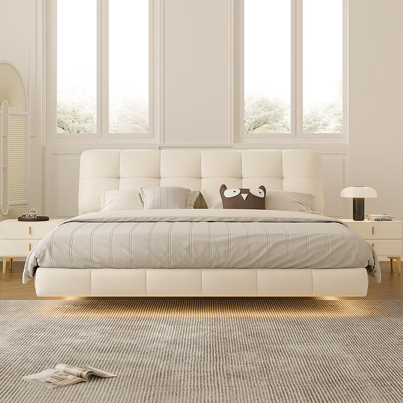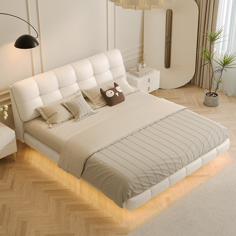 冬熊悬浮床带灯轻奢简约现代泡芙床奶油风双人床婚床 带灯款头层牛皮床+床垫 1800mm*2000mm 框架结构
