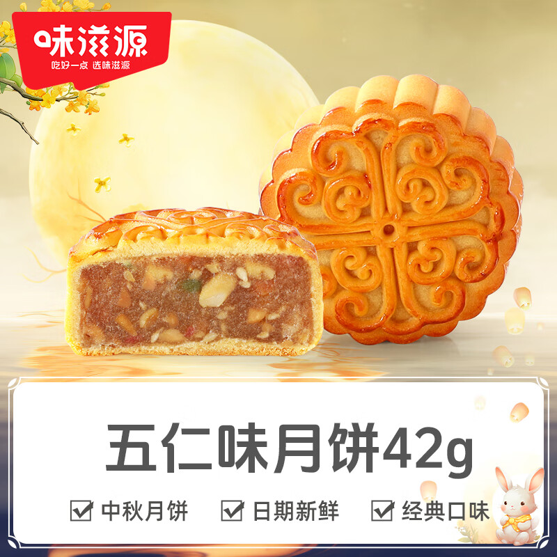 味滋源中秋节广式月饼黑芝麻豆沙水果多口味传统糕点心散装月饼R 五仁味42g【单枚】