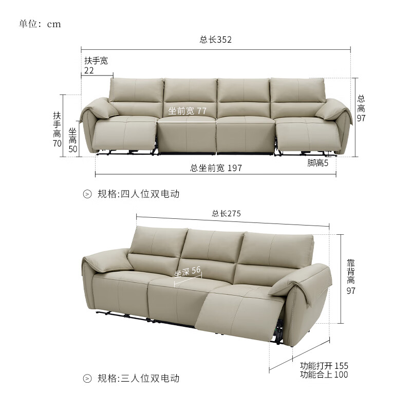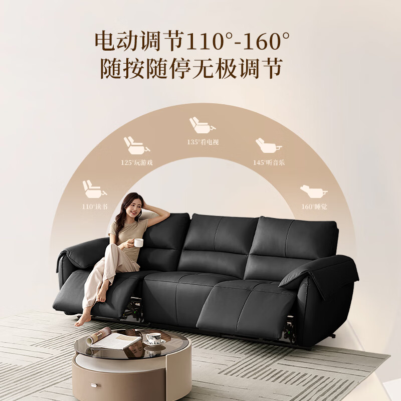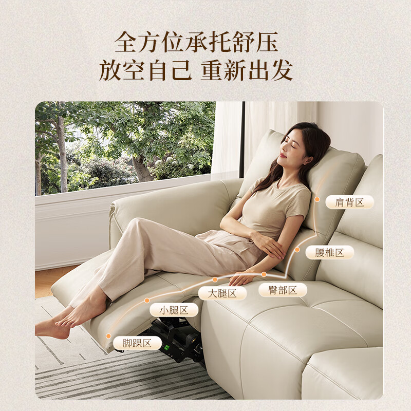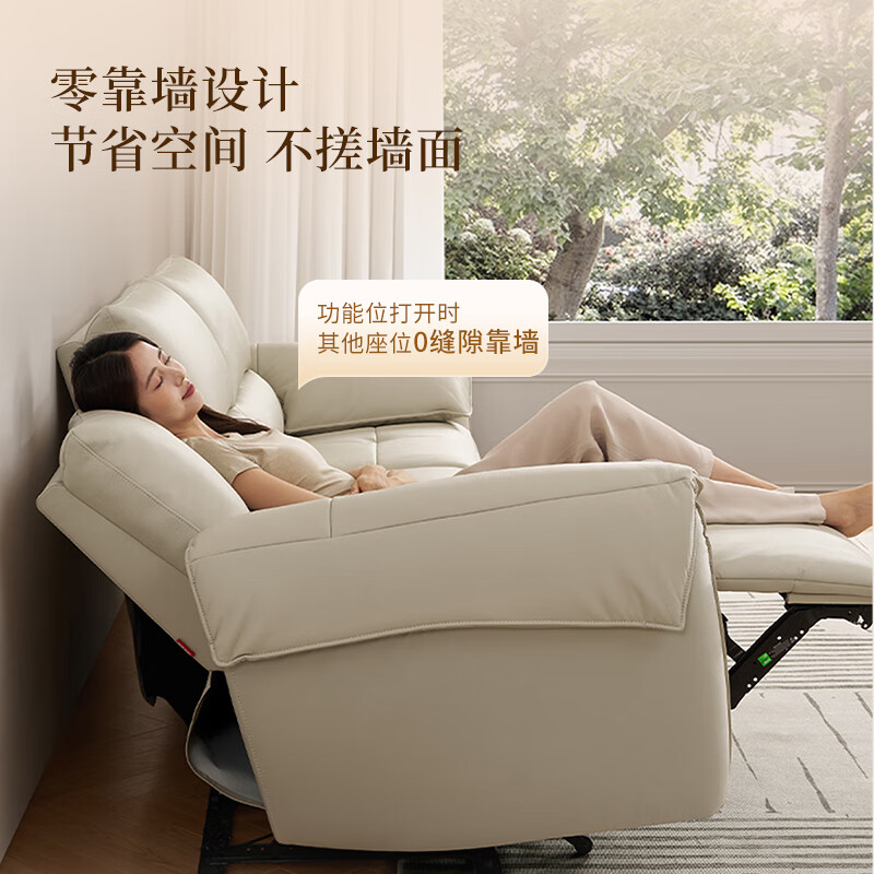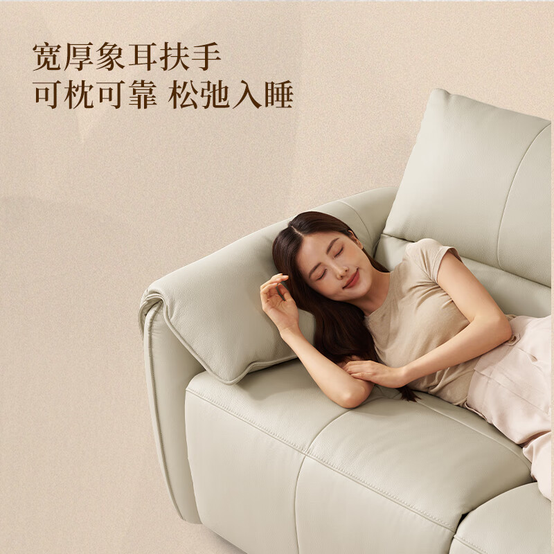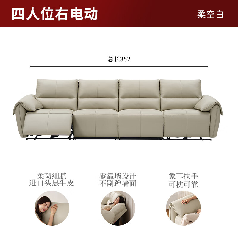 顾家家居真皮沙发 钢琴键 现代头层牛皮奶油风客厅大坐深羽毛填充沙发1259 【柔空白】四人位右电动