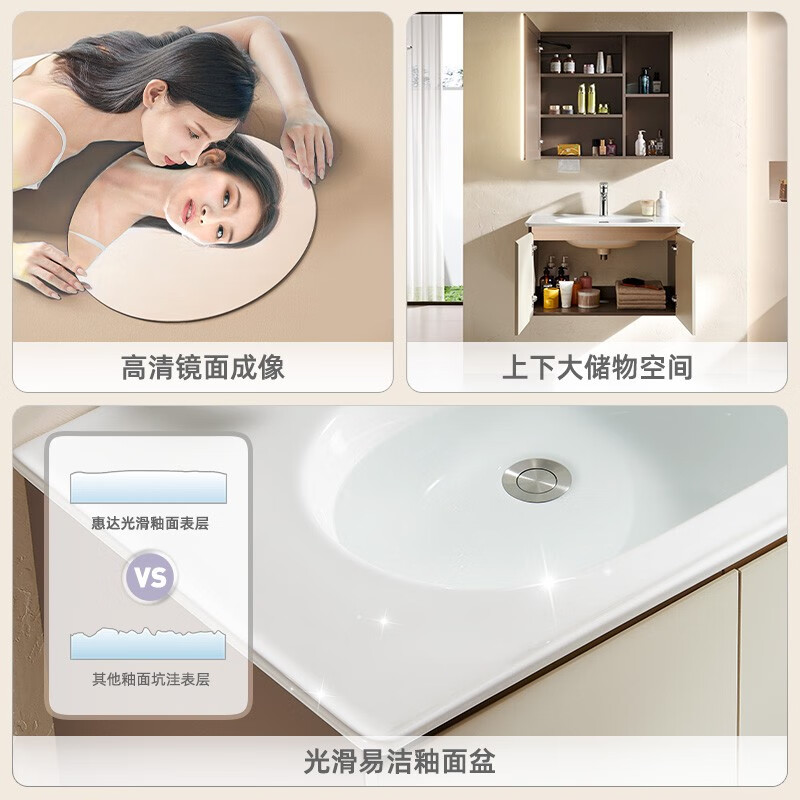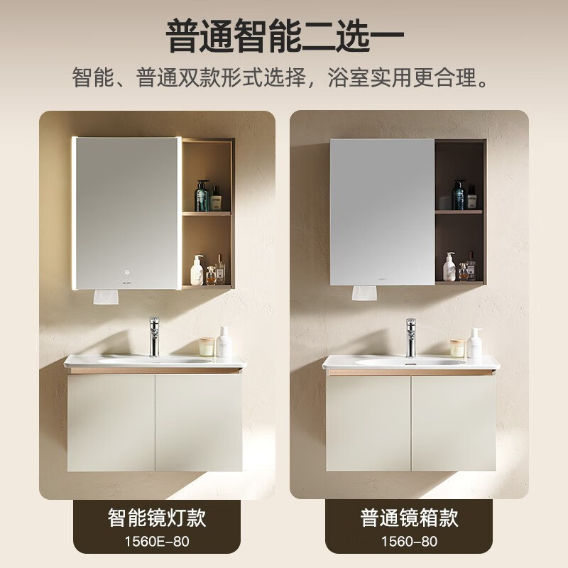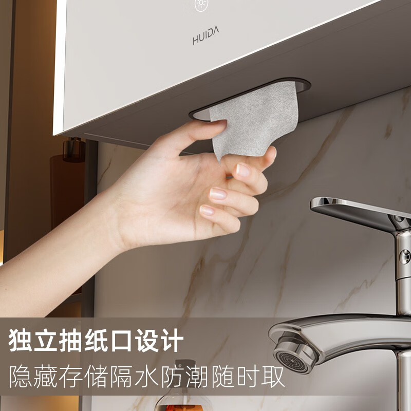 惠达(HUIDA)惠达卫浴1560轻奢浴室柜洗手盆卫生间家用一体洗漱台组合 纸抽+智能3档灯光+龙头