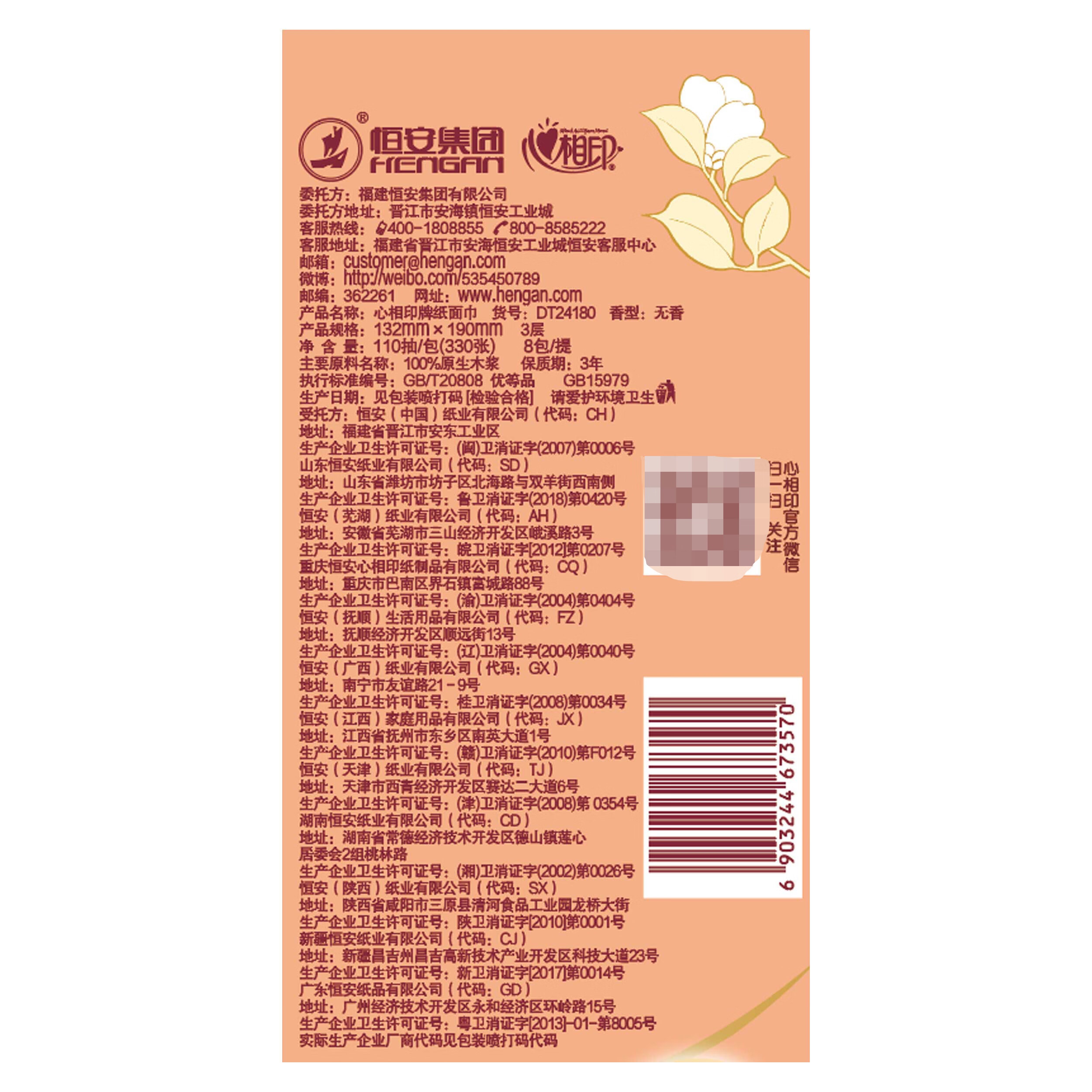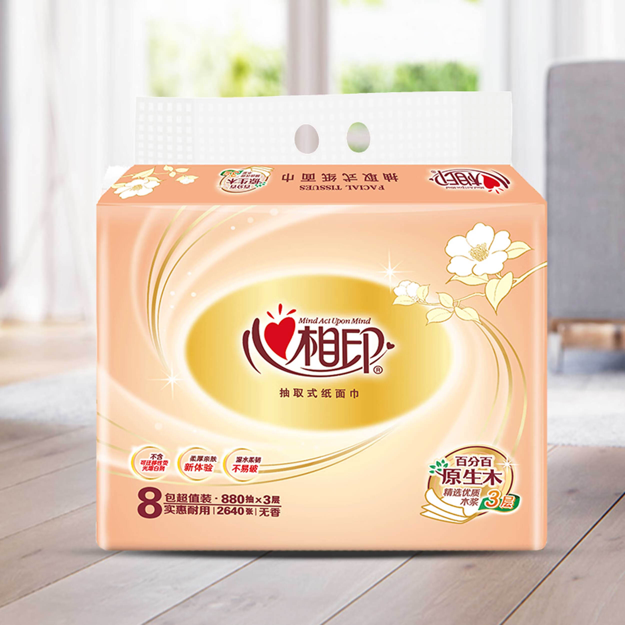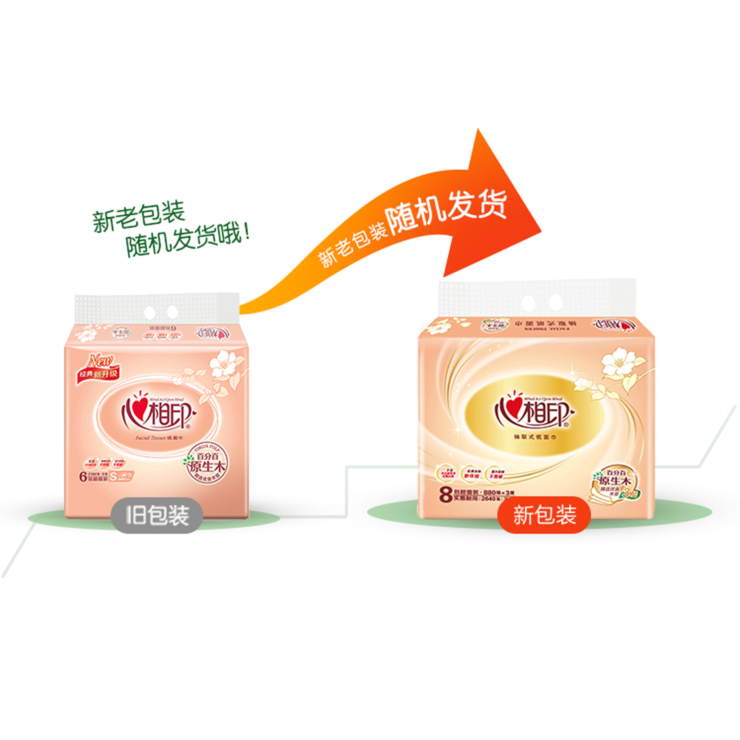 心相印 经典系列抽纸 3层110抽 8包 原生木浆纸纸巾(新旧包装随机发货)