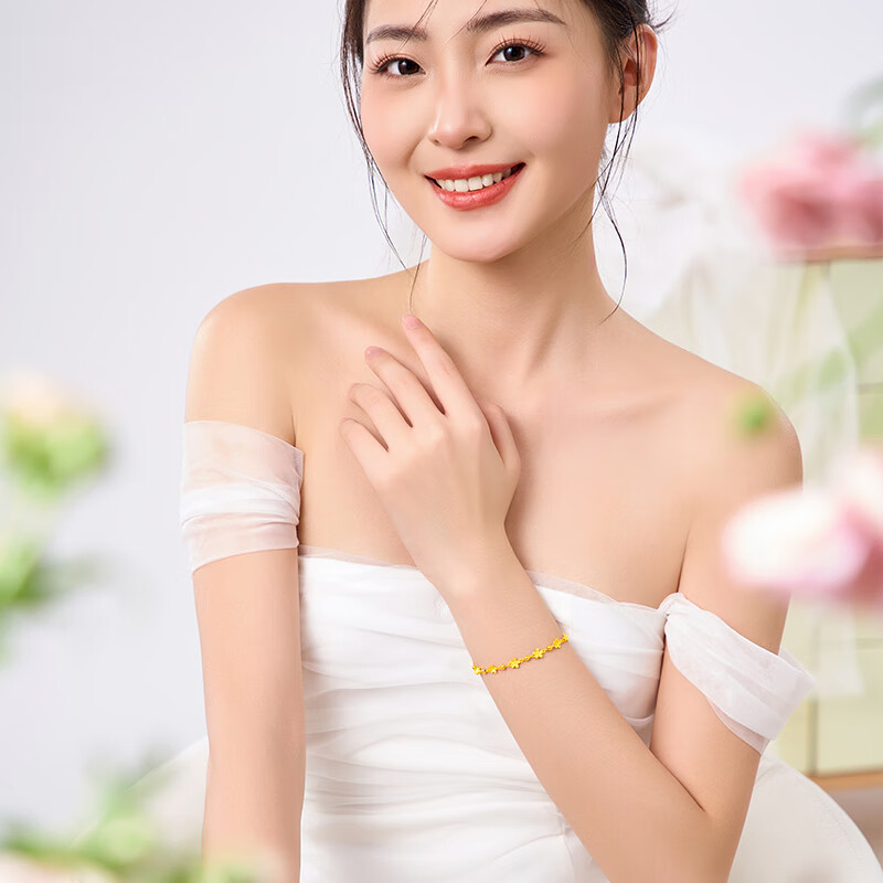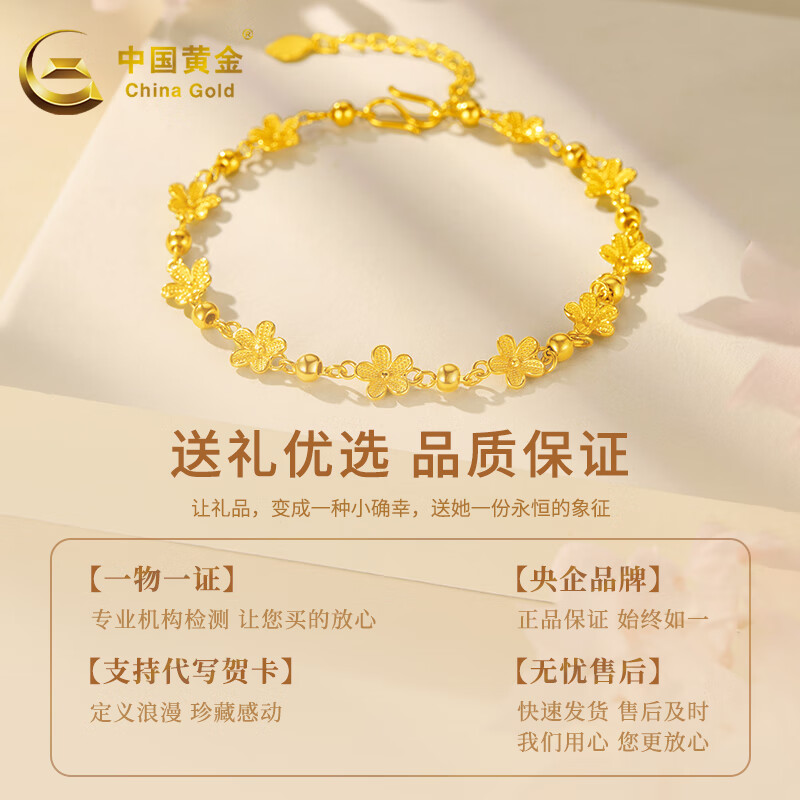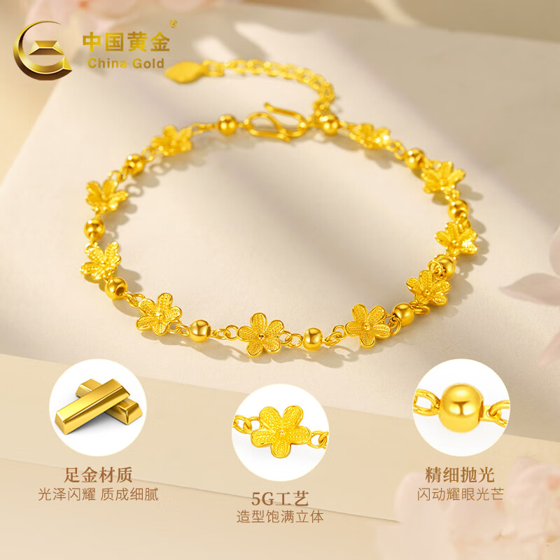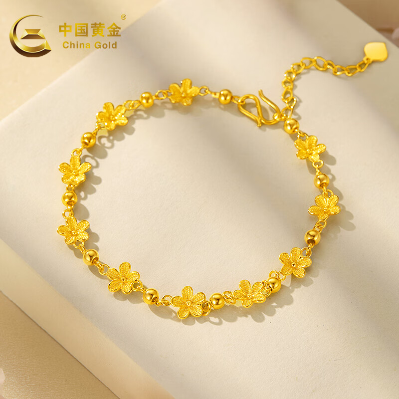 中国黄金(CHINA GOLD)黄金手链女款足金花海手饰烂漫樱花送女友节日礼物 花海手链(约5.7g)