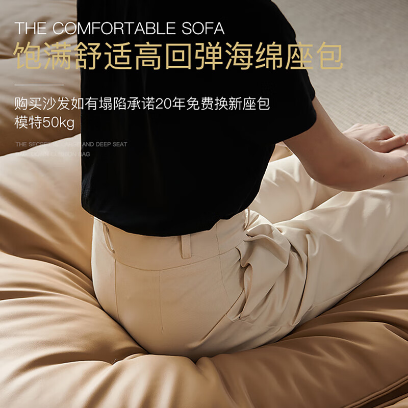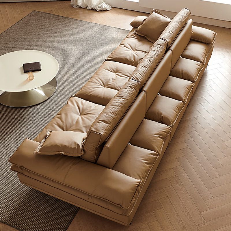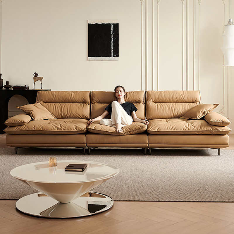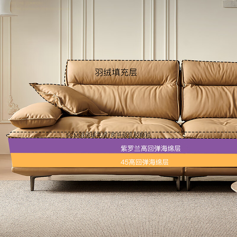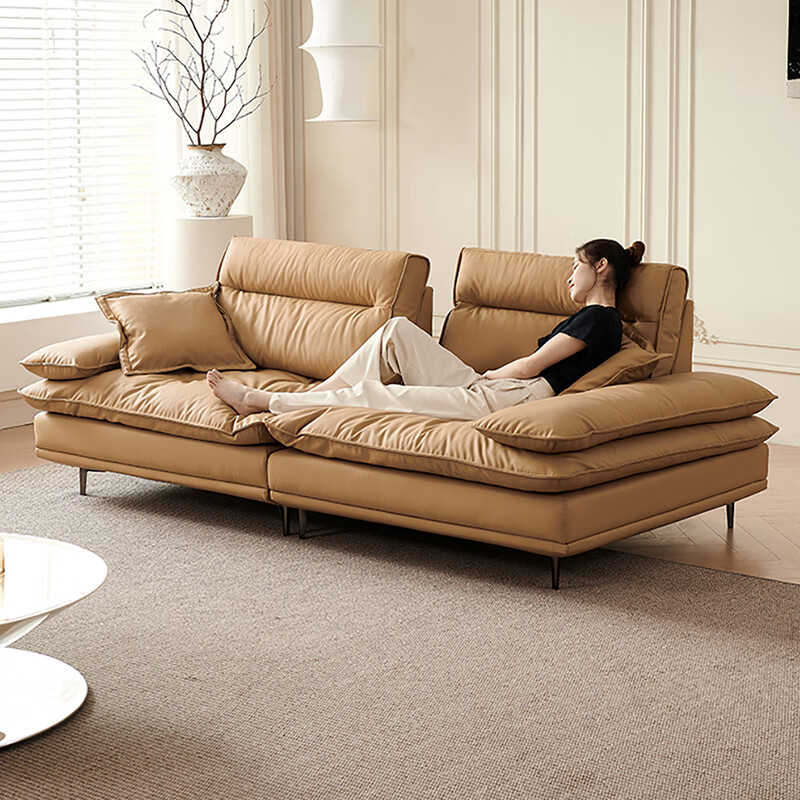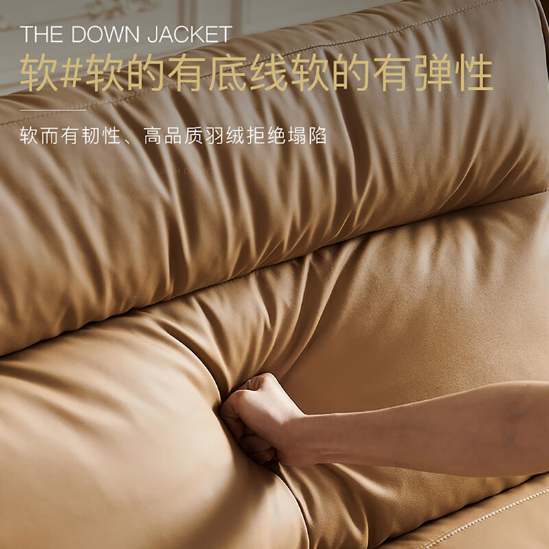 比里屋可移动靠背沙发帆船焦糖色头层真皮奶油风超深坐宽硅胶皮沙发 3.3米五人位(分体) 细摔牛皮羽绒坐包