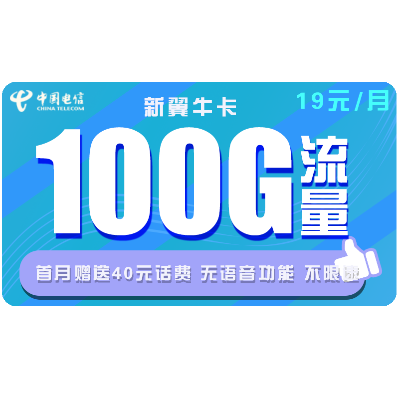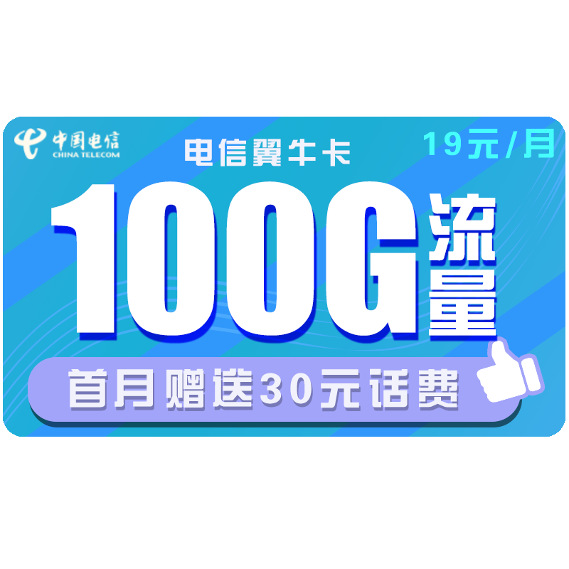 中国电信 手机卡流量卡上网卡电话卡翼卡校园卡全国通用奶牛卡星辰卡100G包年5G不限速畅享 电信翼牛卡 19包100G全国流量 送30话费
