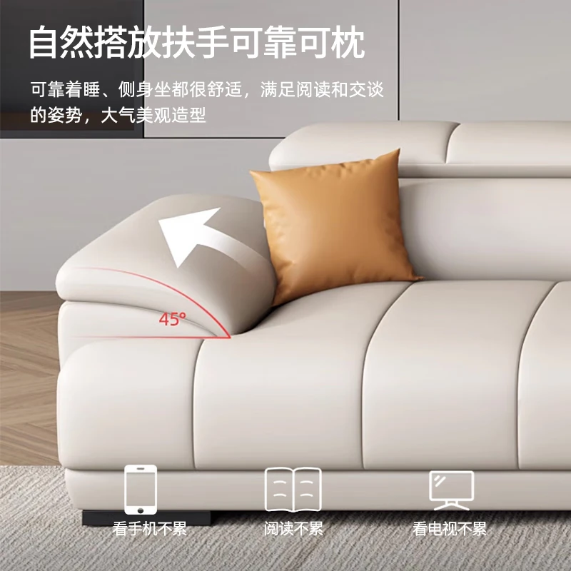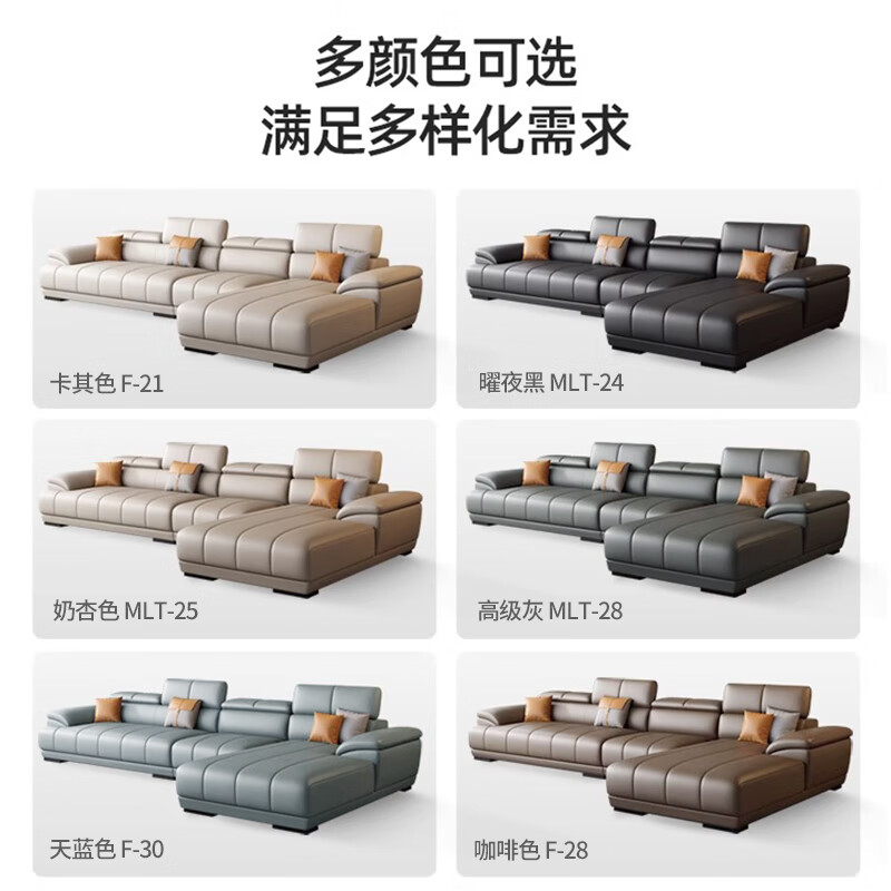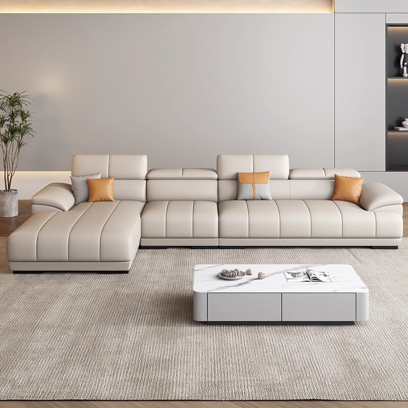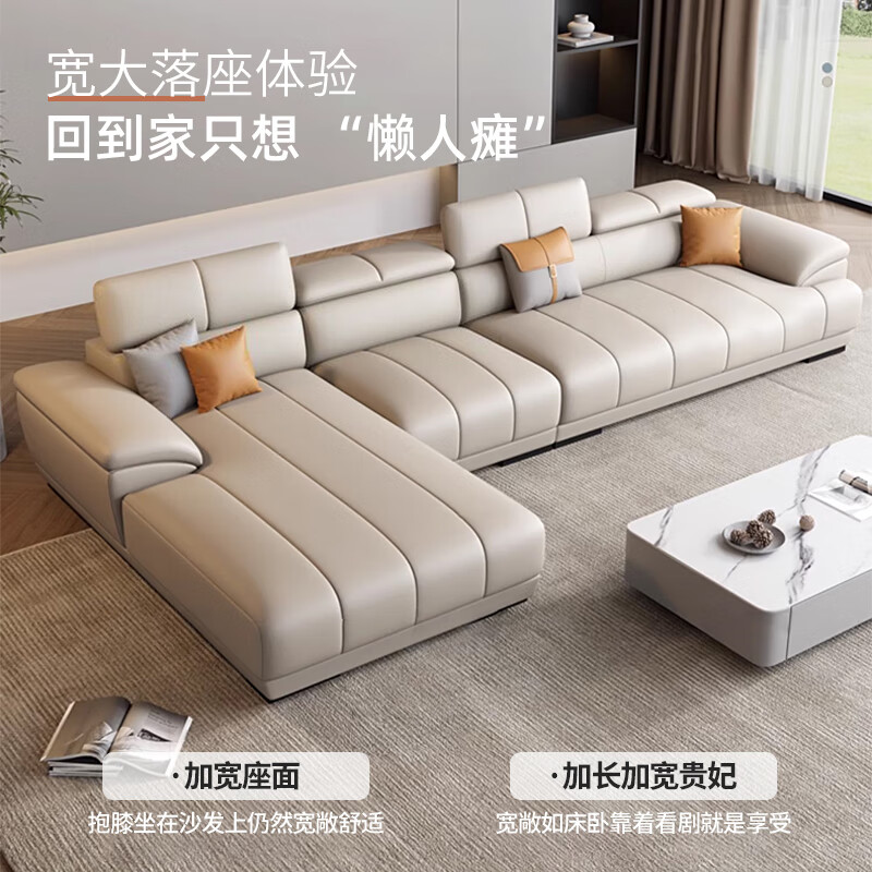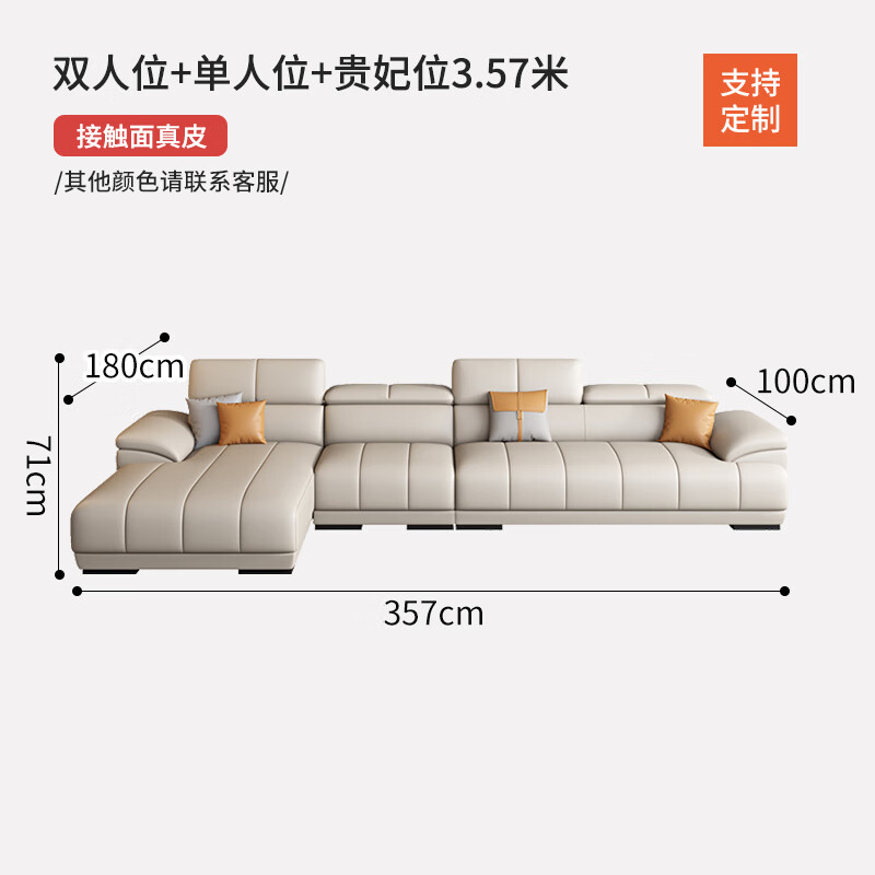 顾巢奶油风真皮沙发头层牛皮客厅小户型贵妃转角沙发 双+单+贵3.57米 海绵座包