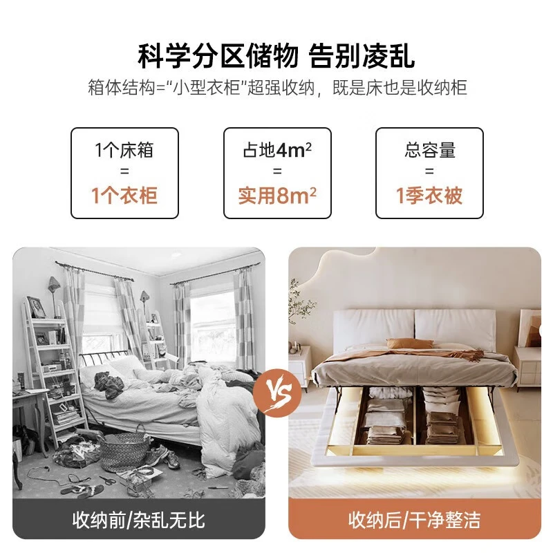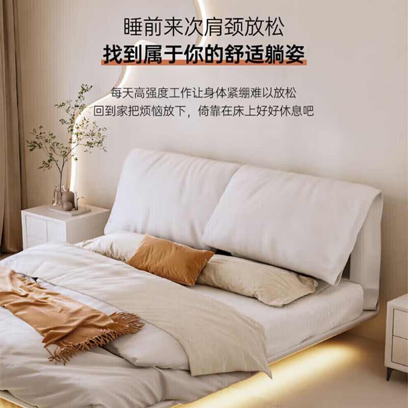 范思爱(FANSACE)奶油风双人床1.8米2米多功能大象耳朵床箱体储物真皮床简约软包床 S级细摔头层牛皮床+护脊床垫+1柜 1.8*2.0米 加密排骨架/框架结构