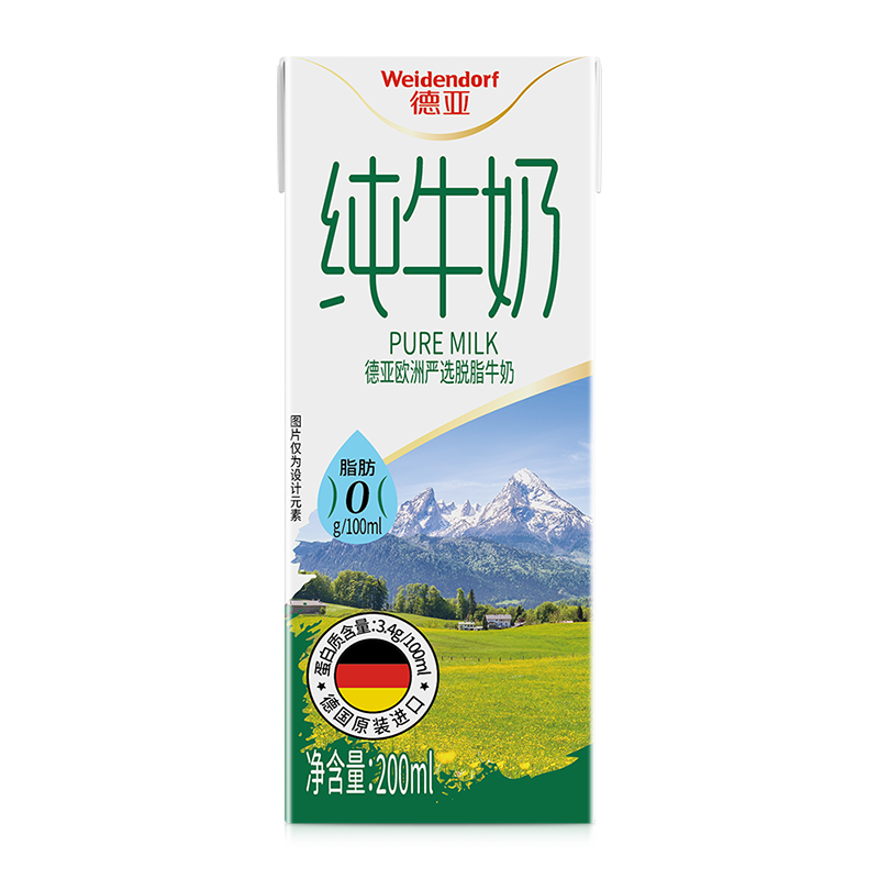 百亿下单【德亚】德国原装进口脱脂纯牛奶,200ml*12盒装,优选全球黄金奶源带,优质蛋白,进口奶源,新鲜批次。