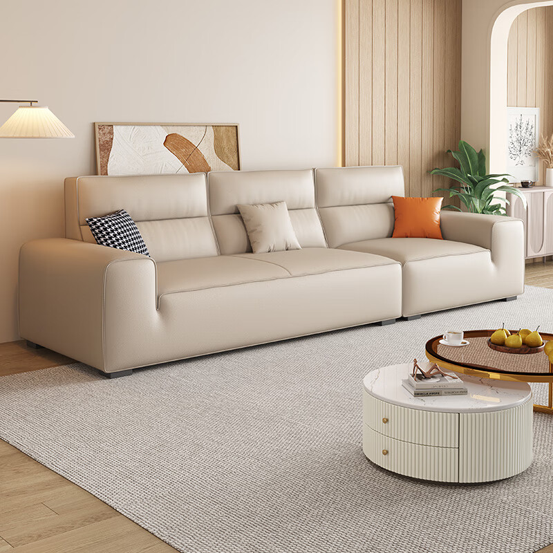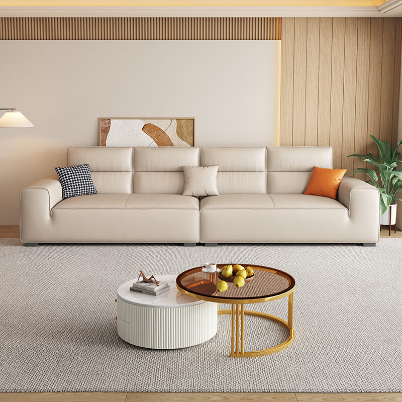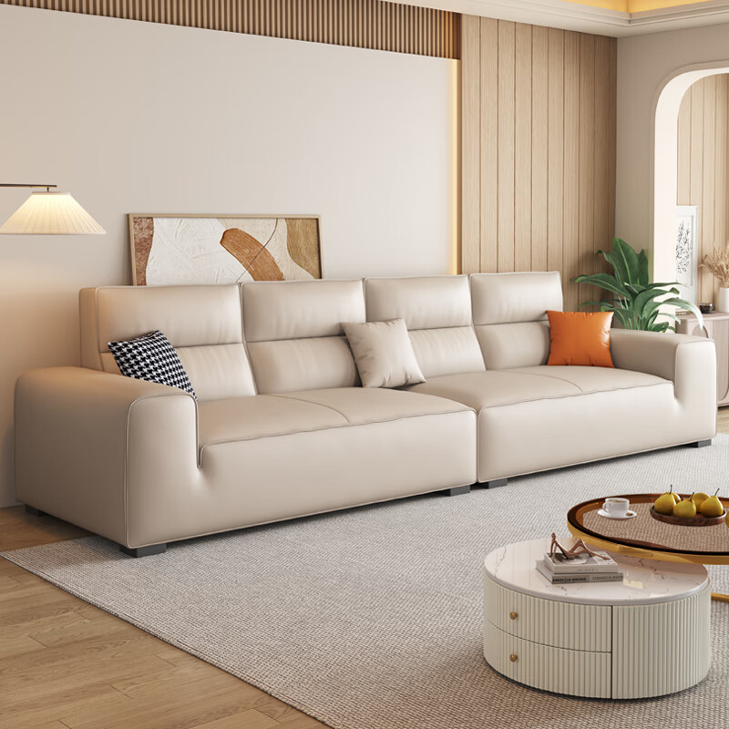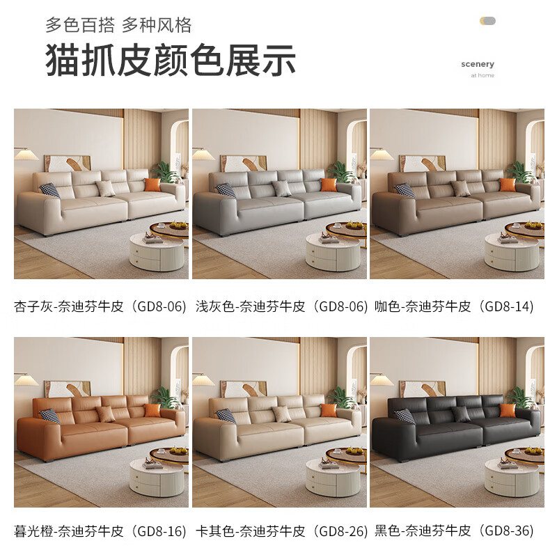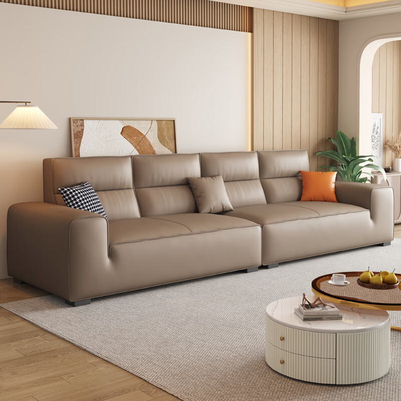 家家堡沙发意式极简真皮沙发客厅大小户型现代简约奶油风直排猫抓皮沙发 【奈迪芬牛皮】咖色 四人位 340cm 直排【海绵版】