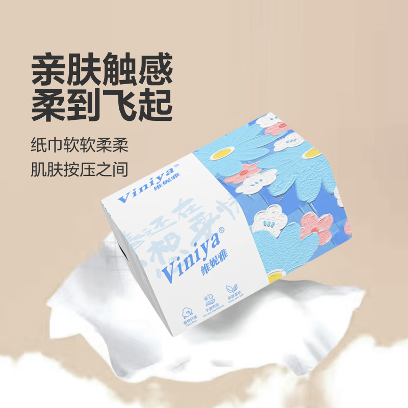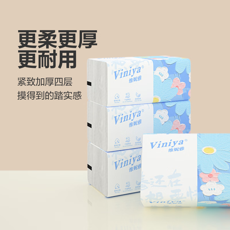 Viniya原木气垫纸巾家用抽纸餐巾纸卫生纸四层60抽加厚纸抽面巾纸 【邀新专享】240张便携装5包