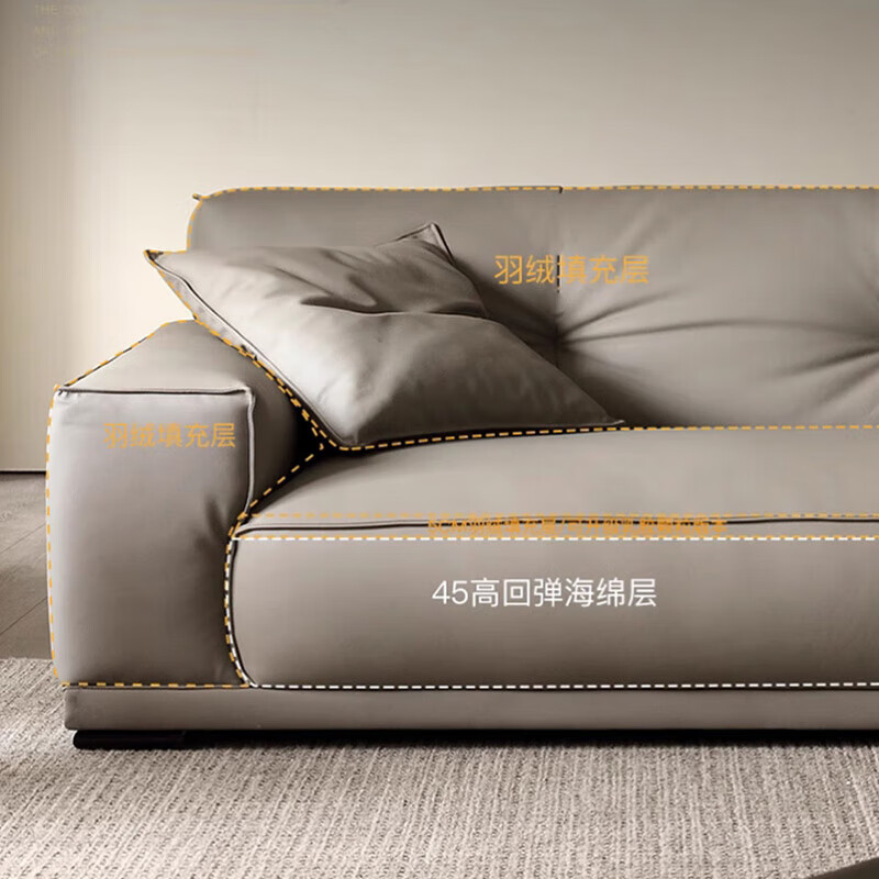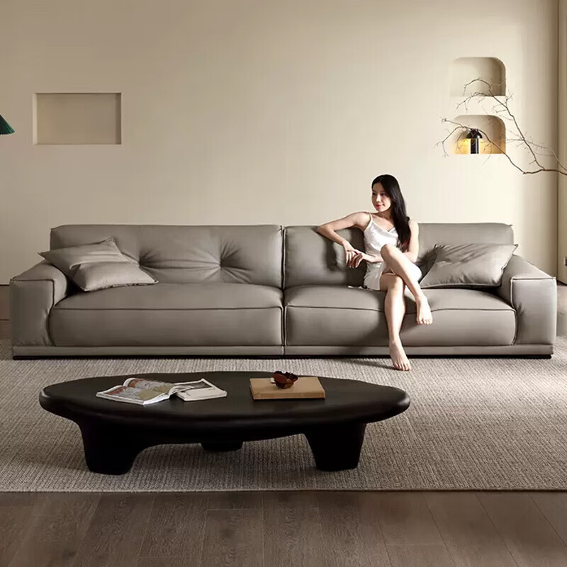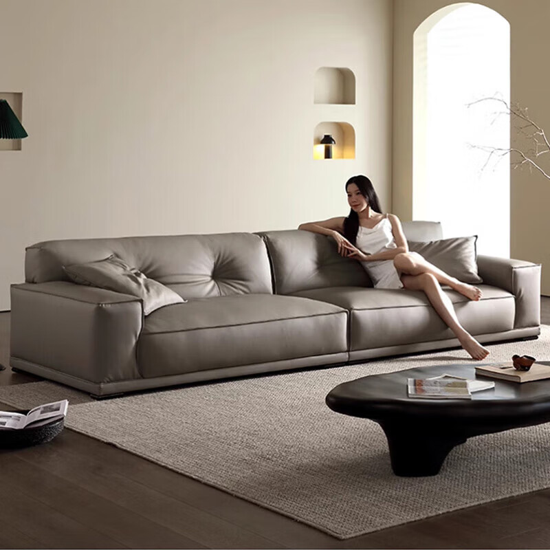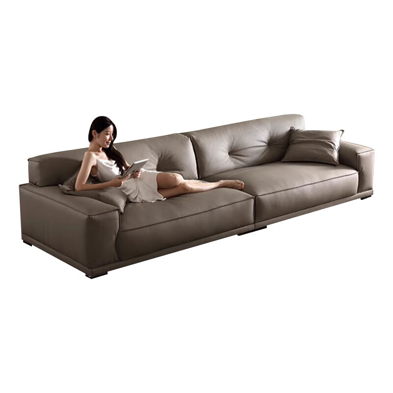 茂湘辕意式极简真皮沙发客厅直排现代简约豆腐块大马士革小奶牛沙发牛皮 2.8米直排沙发 进口松木框架+海绵坐垫