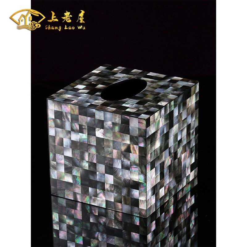 枳记家 正方形客厅欧式纸巾盒乔迁卷纸筒纸巾筒抽纸盒创意简约黑色贝壳新家卷纸盒家用新房