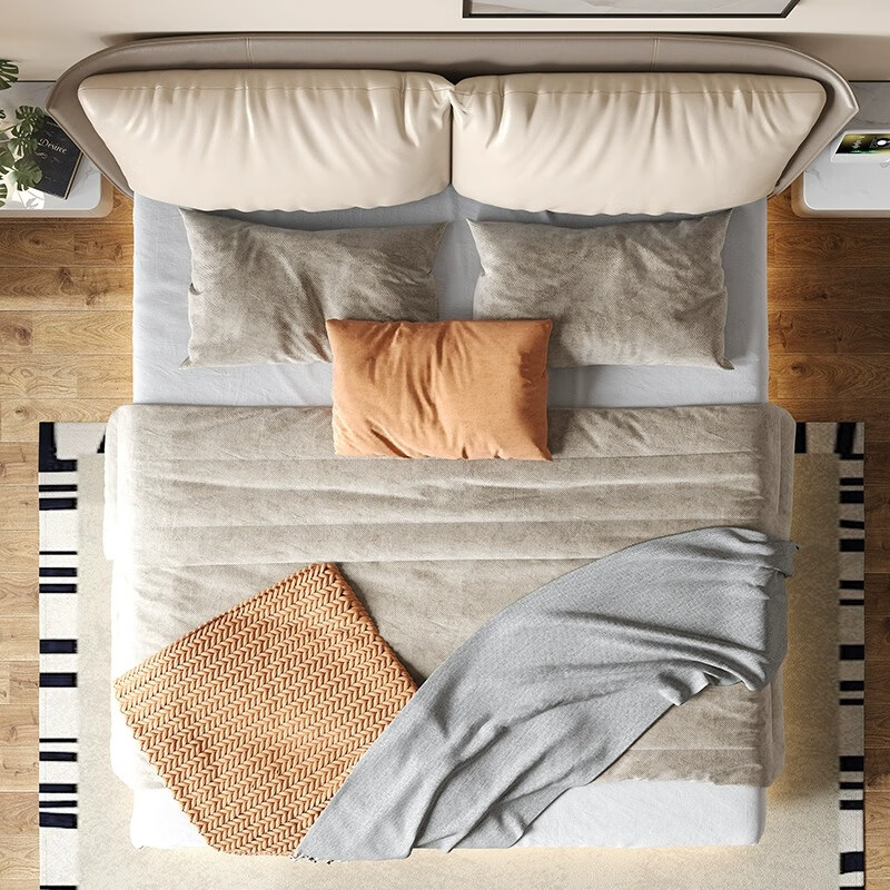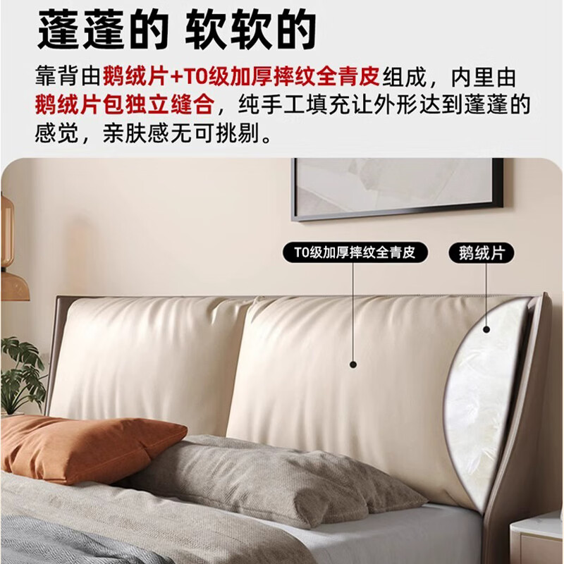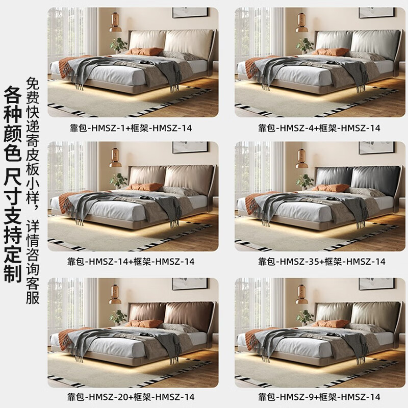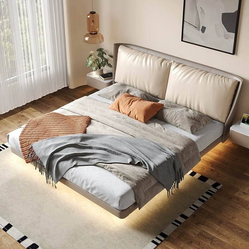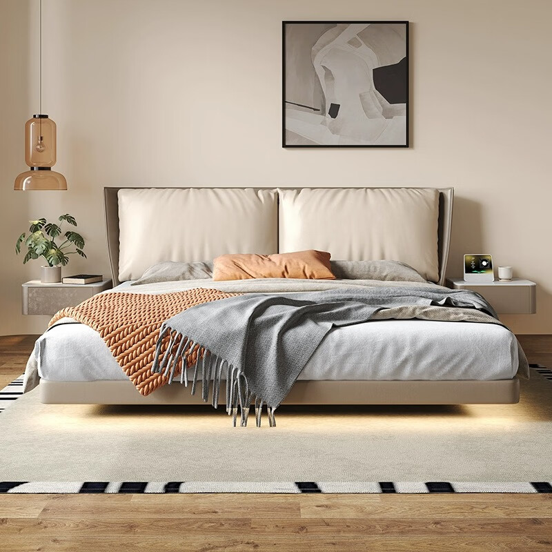 玛蒂丽轻奢奶油风卧室双人床现代简约真皮床侘寂风悬浮床新款网红软包床 真皮床 【升级5D静音排骨架】 头层牛皮/V级+框架/1.5/1.8/2.0m