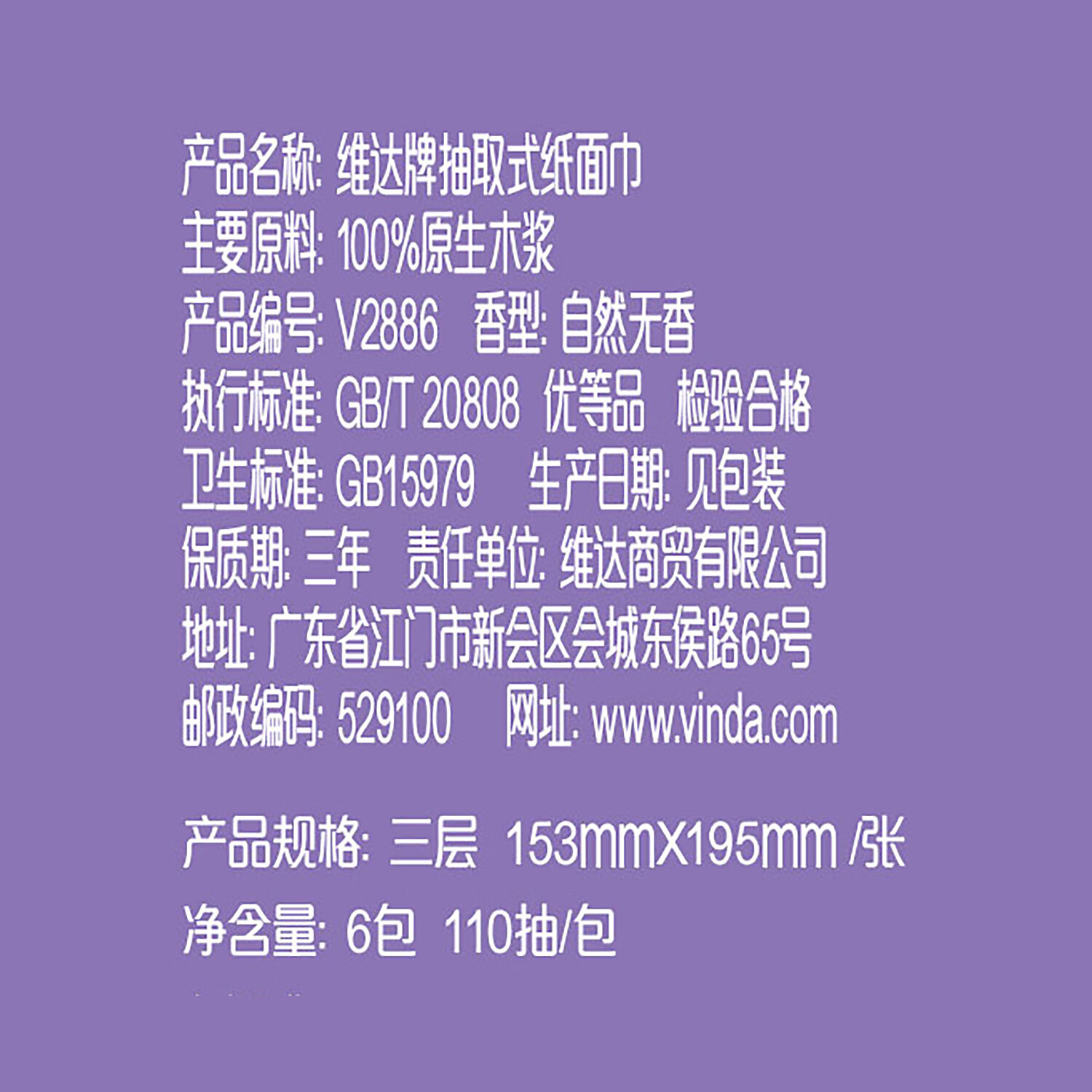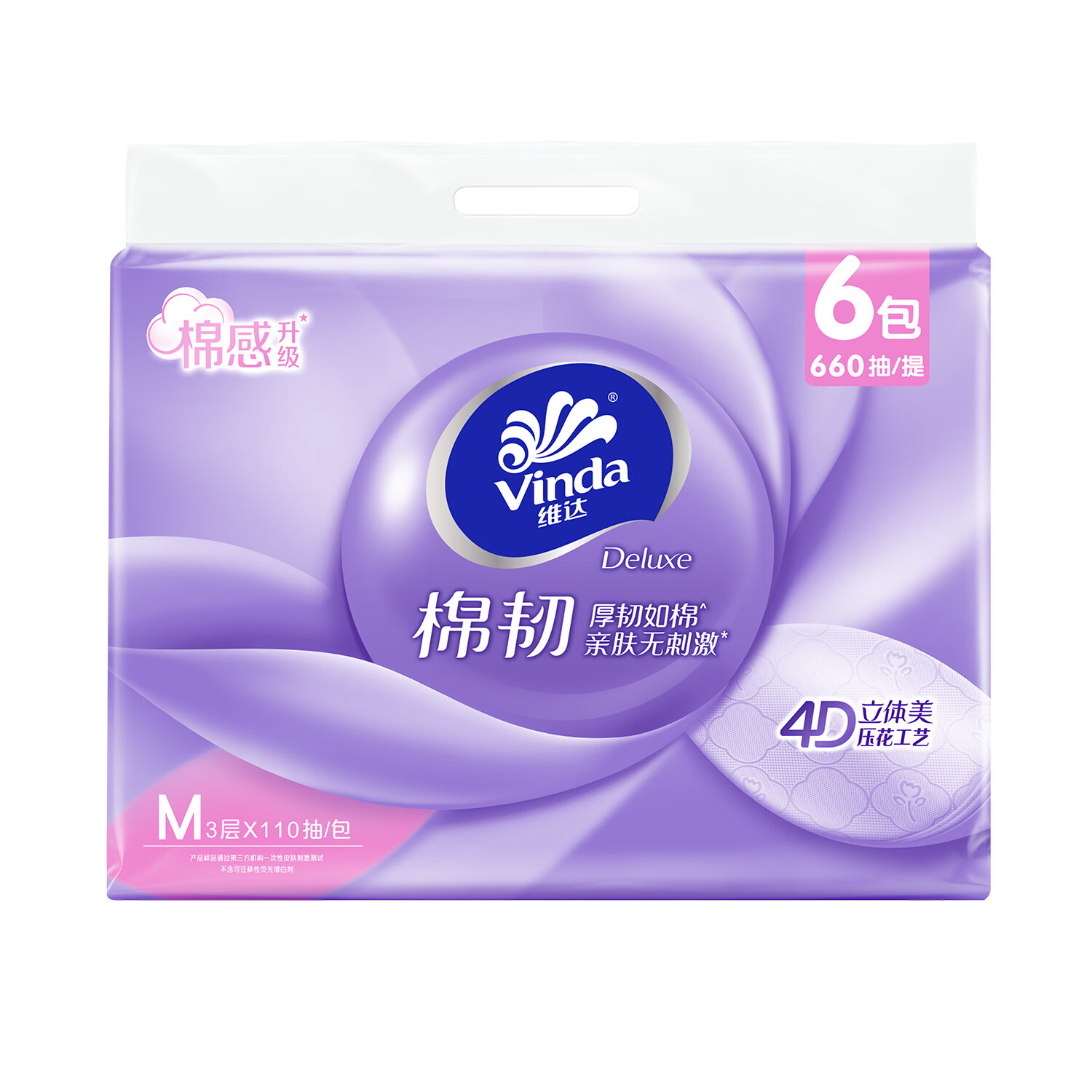 维达(Vinda) 棉韧压花抽纸 3层 110抽*6包 M码 153*195mm
