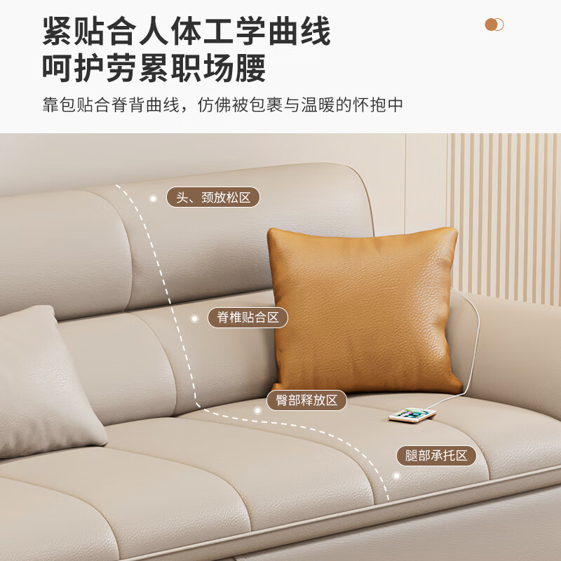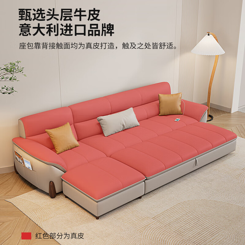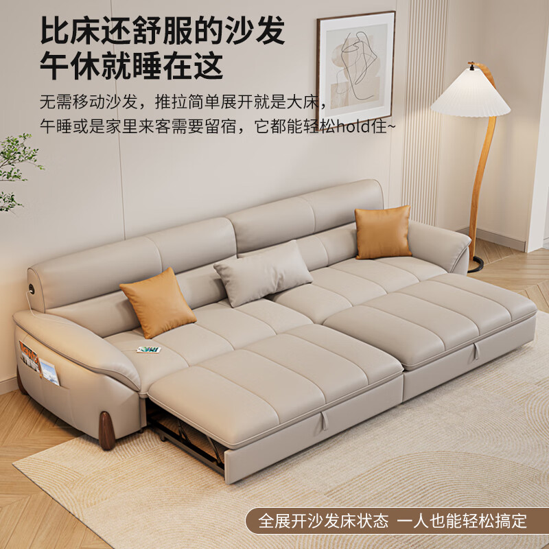 金观真皮沙发床现代简约奶油风直排式坐卧两用多功能2024新款佛山家具 2.2米三人位 沙发床 1.5m[加宽床深]头层牛皮+乳胶