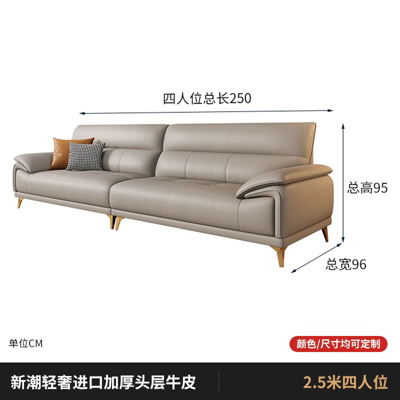 纬恒康简约现代真皮沙发轻奢客厅三人位直排高靠背小户型牛皮沙发奶油风 四人位 2.5米 接触面头层牛皮